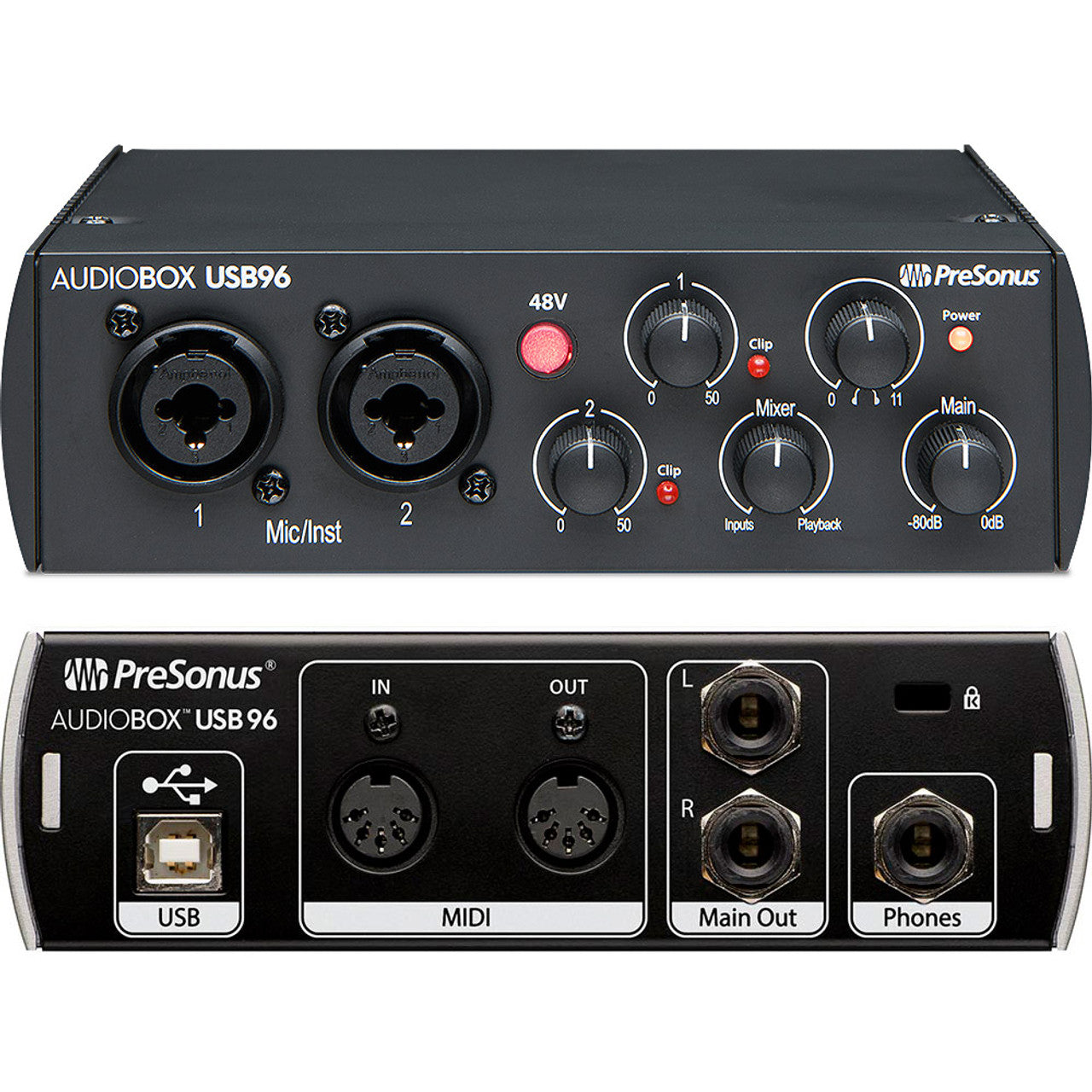 - The AudioBox 96 USB two-channel audio interface