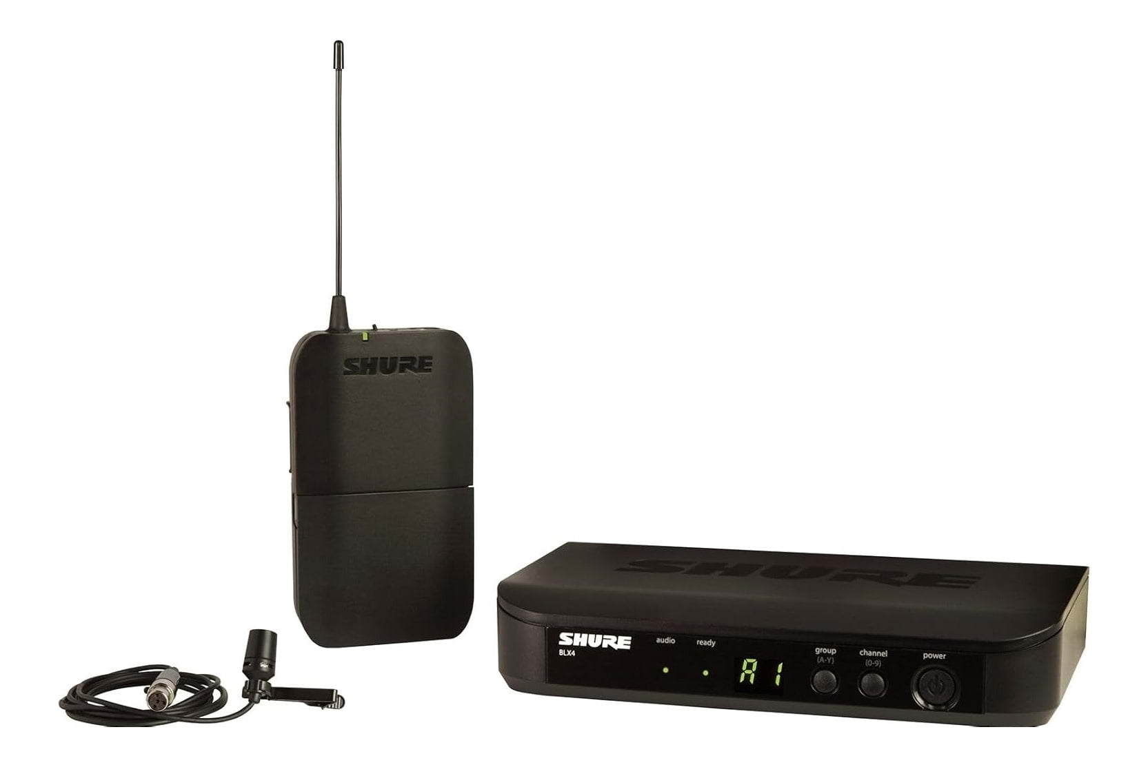 The Shure BLX14/CVL is an affordable analog UHF wireless lavalier system with a cardioid condenser mic (CVL), BLX1 bodypack, and BLX4 receiver, offering up to 12 simultaneous systems, a 300ft (91m) range, and 14-hour battery life from 2 AA batteries, featuring QuickScan for easy frequency setup, ideal for presenters needing hands-free, clear vocal pickup.